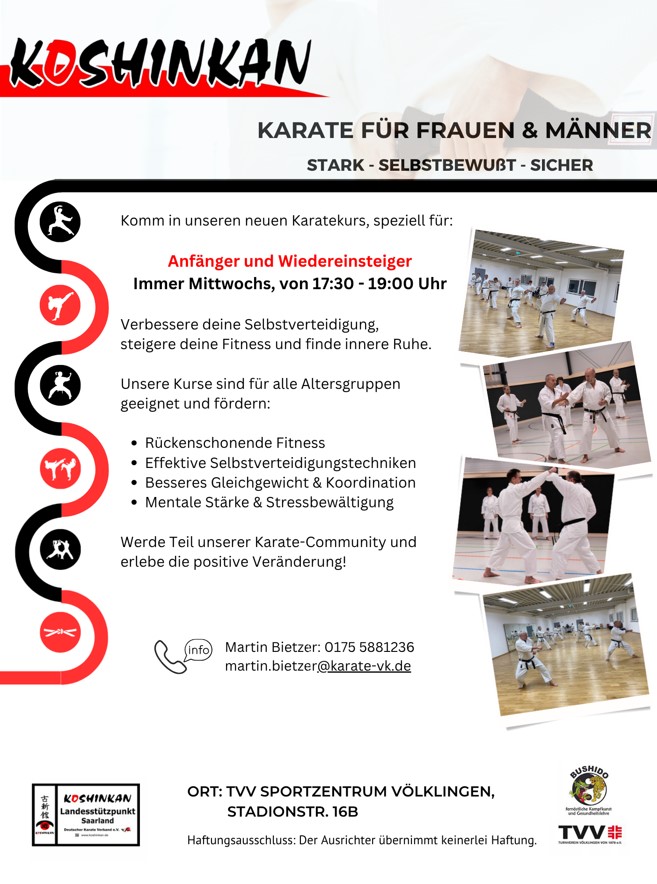 - Jeden Mittwoch - Neuer Anfängerkurs. 17.30 - 19.00 Uhr