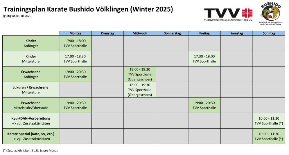 Trainingszeiten Zusatzaktivitäten und neue Ausschreibungen finden Sie direkt unter Termine / Ausschreibungen!